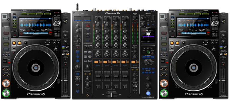 Ein starkes Set für Clubs und private Partys: Zwei CDJ-2000 Player mit dem neuen DJM-A9 Mixer – Klassiker trifft auf modernste Technik.